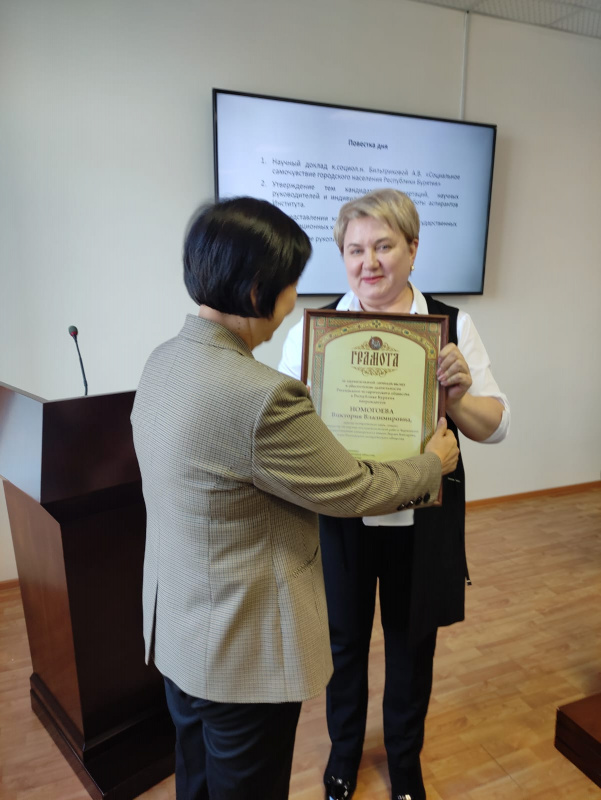 31 октября 2023 г. на заседании Учёного совета Института монголоведения, буддологии и тибетологии СО РАН торжественно была награждена Почётной грамотой Российского исторического общества доктор исторических наук, доцент, проректор по НИР БГУ Виктория Владимировна Номогоева.
