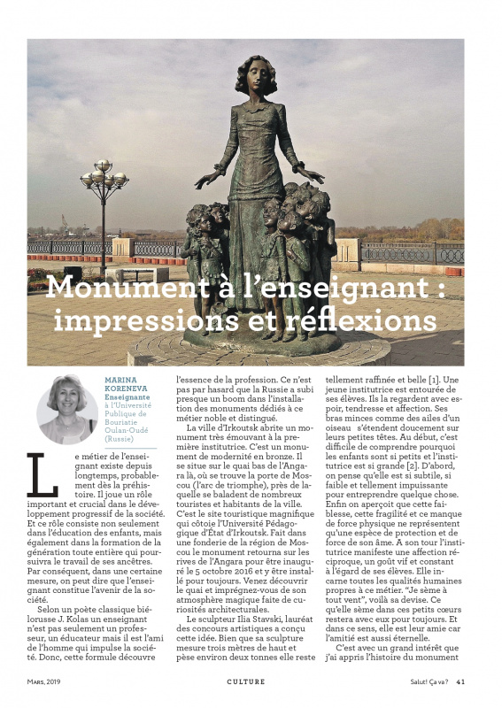 - распространение позитивного имиджа университета в СМИ — сотрудничество и публикации в франкофонном журнале «Salut! Ca va?» (с 2010 – по настоящее время);