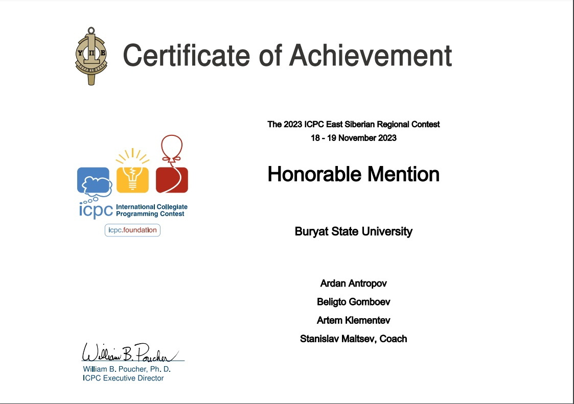 4 место - команда ИГУ (7 задач, штрафное время 744)