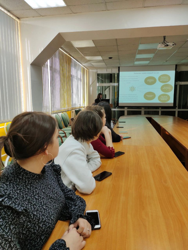24 ноября в рамках проекта «Студенческая лига лекторов Республики Бурятия» в «Открытом лектории» прошла вторая лекцию на тему "Наука - взгляд в будущее". Лектором выступила, студент Института естественных наук Шишмарева Марина Леонидовна. В современном мире наука играет ключевую роль в нашей жизни, и очень интересно посмотреть, как она может развиваться и повлиять на наше будущее. Были озвучены ряд вопросов по данной теме, такие как: "Технологии будущего", "Влияние науки на общество и экологию" и т.д.