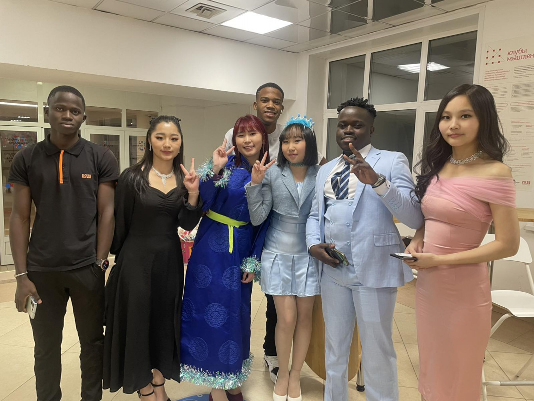 По завершении приветственной части была представлена концертная программа, которую подготовили иностранные студенты. С поздравлениями выступили студенты Монголии, Кореи, Таджикистана, Нигерии и из Китая.