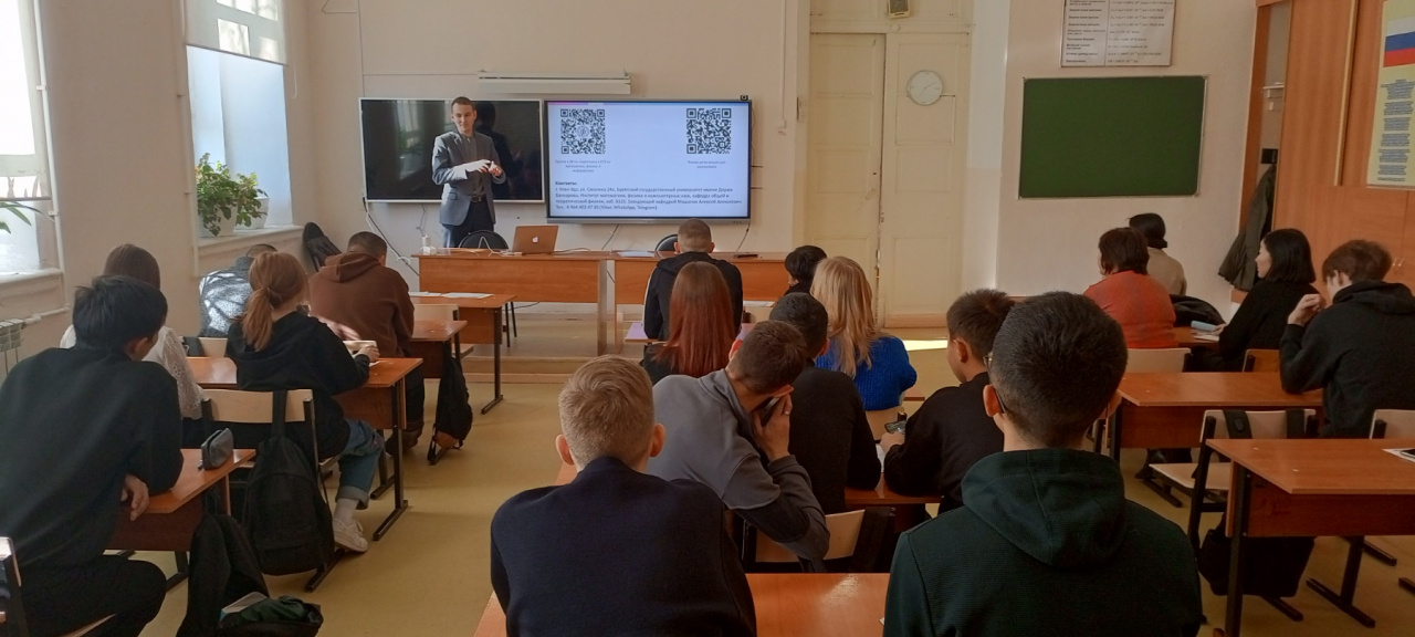 25 января 2024 года состоялись выездные образовательные мастер-классы по математике, физике и информатике, группы преподавателей института математики, физики и компьютерных наук (Бадеев А.В., зав. каф. информационной безопасности, к.ф.-м.н, доцент; Мордовской А.К., доцент каф. информационной безопасности, к.ф.-м.н, доцент; Машанов А.А., зав. каф. общей и теоретической физики, к.т.н., доцент; Цыбиков А.С., зав. каф. информационных систем и методов искусственного интеллекта, к.п.н.) для учащихся 10 и 11 классов средних общеобразовательных школ Кяхтинского района.