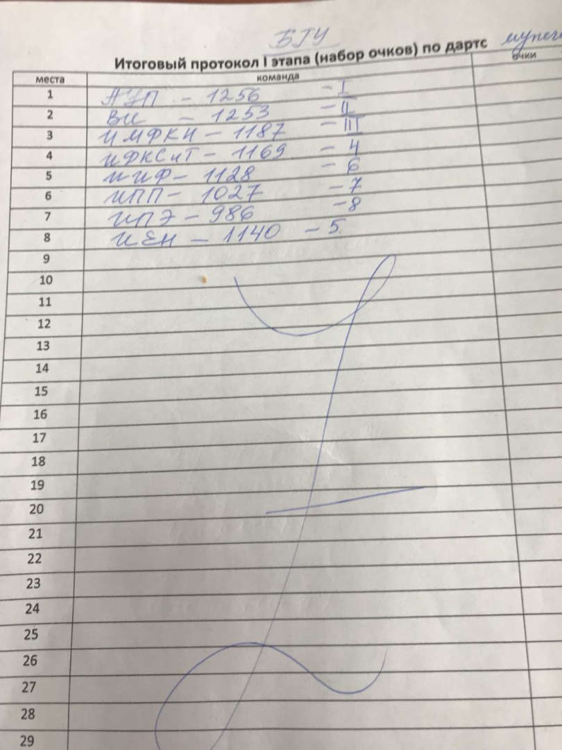 Желающих соревноваться в дартс, бросать дротики в мишень, оказалось много, в основном это начинающие спортсмены. Более 80 преподавателей и сотрудников университета собрались 17 февраля на Центральном стадионе города Улан-Удэ, в специально оборудованном помещении Федерации Дартс РБ, для участия в соревнованиях в рамках Спартакиады БГУ. Соревнования по дартсу проходили на большом подъеме, со здоровым спортивным азартом и желанием набрать как можно больше очков. Команды пожелали ограничиться лишь «Набором очков» и индивидуальным зачетом. Но потом, как отмечали сами участники соревнований сожалели, что не разыграли « Большой раунд» и «301», так как дартс захватил Всех.