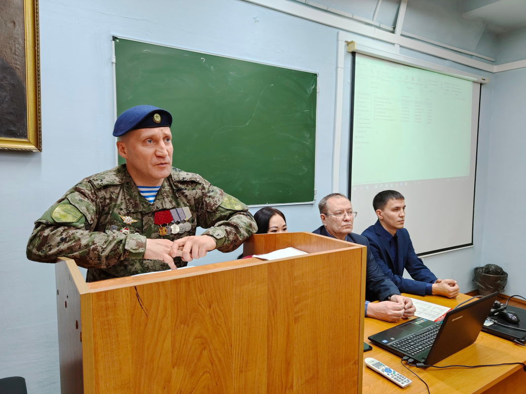 В канун Дня защитника Отечества Координационный центр БГУ организовал встречу для студентов Института естественных наук, Института физической культуры, спорта и туризма, колледжа с сотрудниками специального подразделения одного из правоохранительных органов Республики Бурятия.