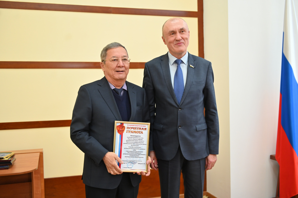 2023 год Указом Президента России был объявлен Годом педагога и наставника. Миссия года – признание особого статуса педагогических работников, в том числе выполняющих наставническую деятельность. В соответствии с решением Президиума Ассоциации юридических вузов (Приказ № 06) за большой личный вклад в решение задач Года педагога и наставника в Российской Федерации, развитие юридического образования и осуществление наставнической деятельности Почётными грамотами награждены: