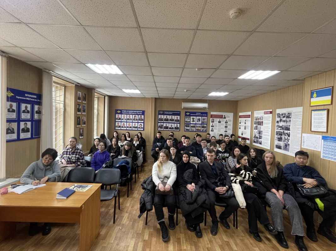 С будущими юристами встретились руководство и младший офицерский состав Управления. Сотрудники МВД провели беседу со студентами, ответили на интересующие их вопросы. Студентов познакомили со структурой учреждения и работой каждого подразделения: следственным управлением, дежурной частью, отделом дознавателей. Некоторые студенты задумались о том, чтобы начать свою трудовую деятельность в рядах полиции.