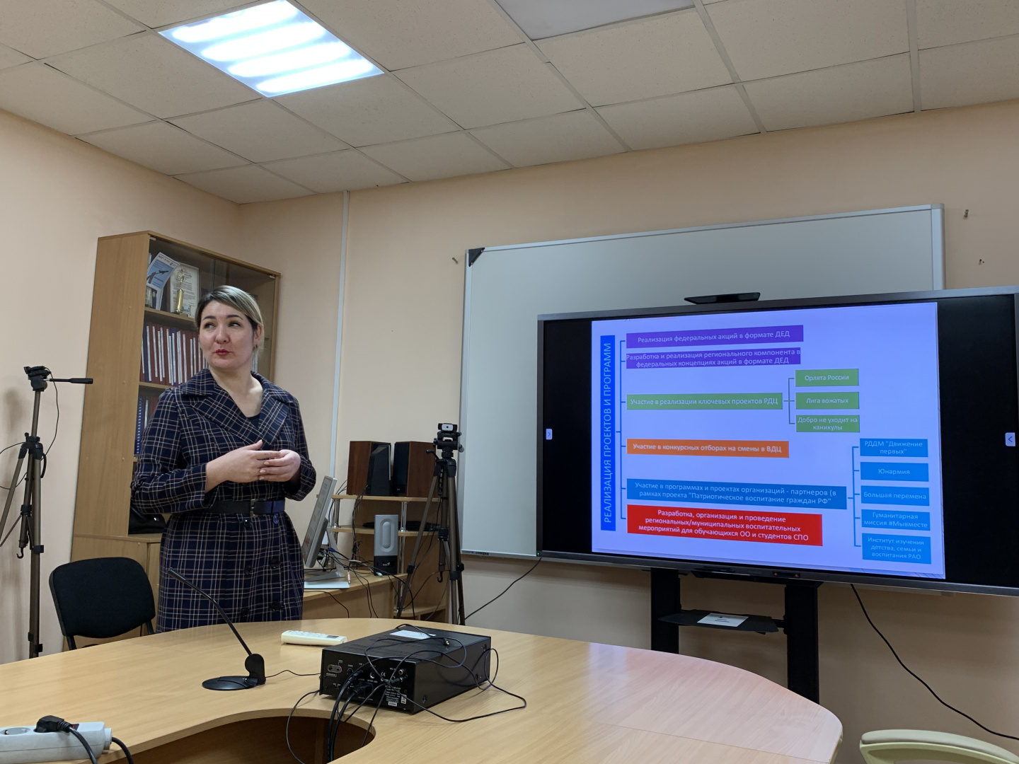 12 марта магистранты получили много полезной информации о специфике деятельности, основных направлениях советника директора по воспитанию. Очирова Сэсэгма Владимировна, специалист по методическому сопровождению регионального ресурсного центра «Навигаторы детства» рассказала о задачах федерального проекта «Навигаторы детства», географии и региональной структуре проекта. Осокина Галина Сергеевна, специалист по сопровождению проектов и программ регионального ресурсного центра «Навигаторы детства» показала ключевые проекты, программы организации, раскрыла особенности проведения региональных/муниципальных воспитательных мероприятий для обучающихся школ и студентов СПО. Чагдурова Оюна Чойжиловна, муниципальный координатор советников руководителей образовательных организаций по воспитательной работе Железнодорожного района рассказала присутствующим о проведении Дней единых действий, взаимодействии с детскими общественными объединениями и социальными партнерами, об основных целях освещения проектов в социальных сетях, подчеркнув важность использования такого инструмента для реализации различных воспитательных форматов.