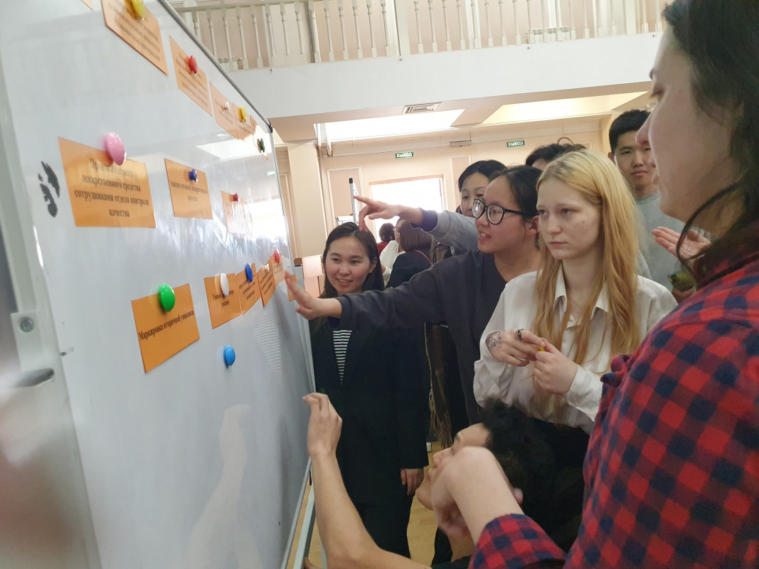 В процессе встречи с обучающимися была проведена интерактивная игра «Цепочка», в которой студенты показали свои знания по химии и другим дисциплинам, проявив смекалку и сообразительность. Чтобы встреча оказалась плодотворной, представители компании предложили заполнить анкеты и пообещали, что в будущем к каждому выпускнику будет оказан индивидуальный подход при принятии на работу. В конце мероприятия Галине Александровне и Екатерине Александровне были вручены Благодарственные письма БГУ за сотрудничество в области содействия трудоустройству наших выпускников.
