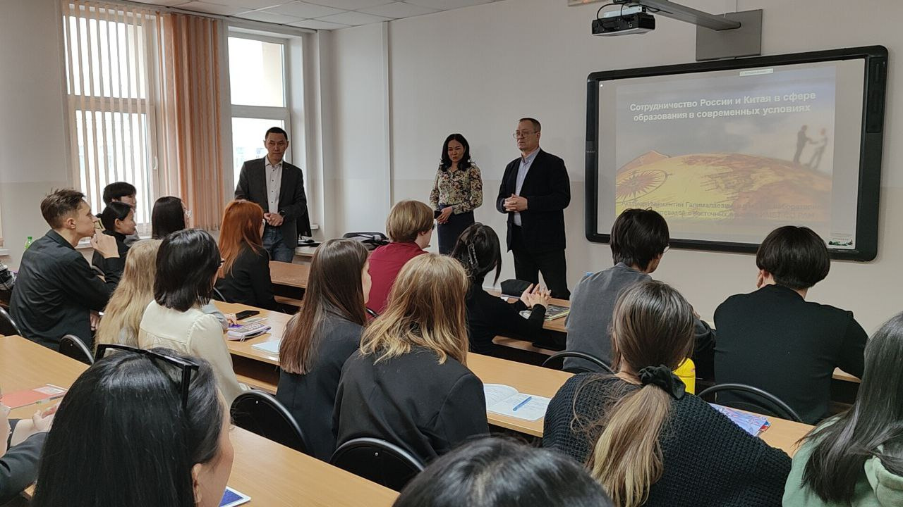 Лекция была посвящена общим вопросам сотрудничества России и Китая в условиях трансграничного взаимодействия. Исторический экскурс был связан с особенностями советско-китайского сотрудничества в сфере образования в середине 1950-х гг. Особое внимание было уделено развитию Северных регионов КНР и созданию промышленной базы в Автономном районе Внутренняя Монголия, провинциях Хэйлунцзян и Цзилинь. В качестве практического примера была дана информация о сотрудничестве Восточного института и Педагогического университета Автономного района Внутренняя Монголия КНР. Студентам была представлена информация об опыте реализации проекта «Китайский мост» (汉语桥) в условиях пандемии на китайских платформах для студентов Восточного института.