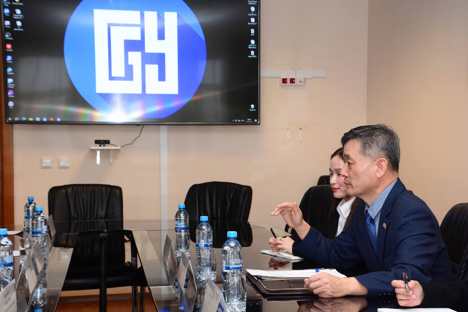 По окончании встречи стороны обменялись подарками и в знак уважения г-н Хан Сеонг Чин вручил ректору Алдару Валерьевичу папки со стихами собственного перевода.