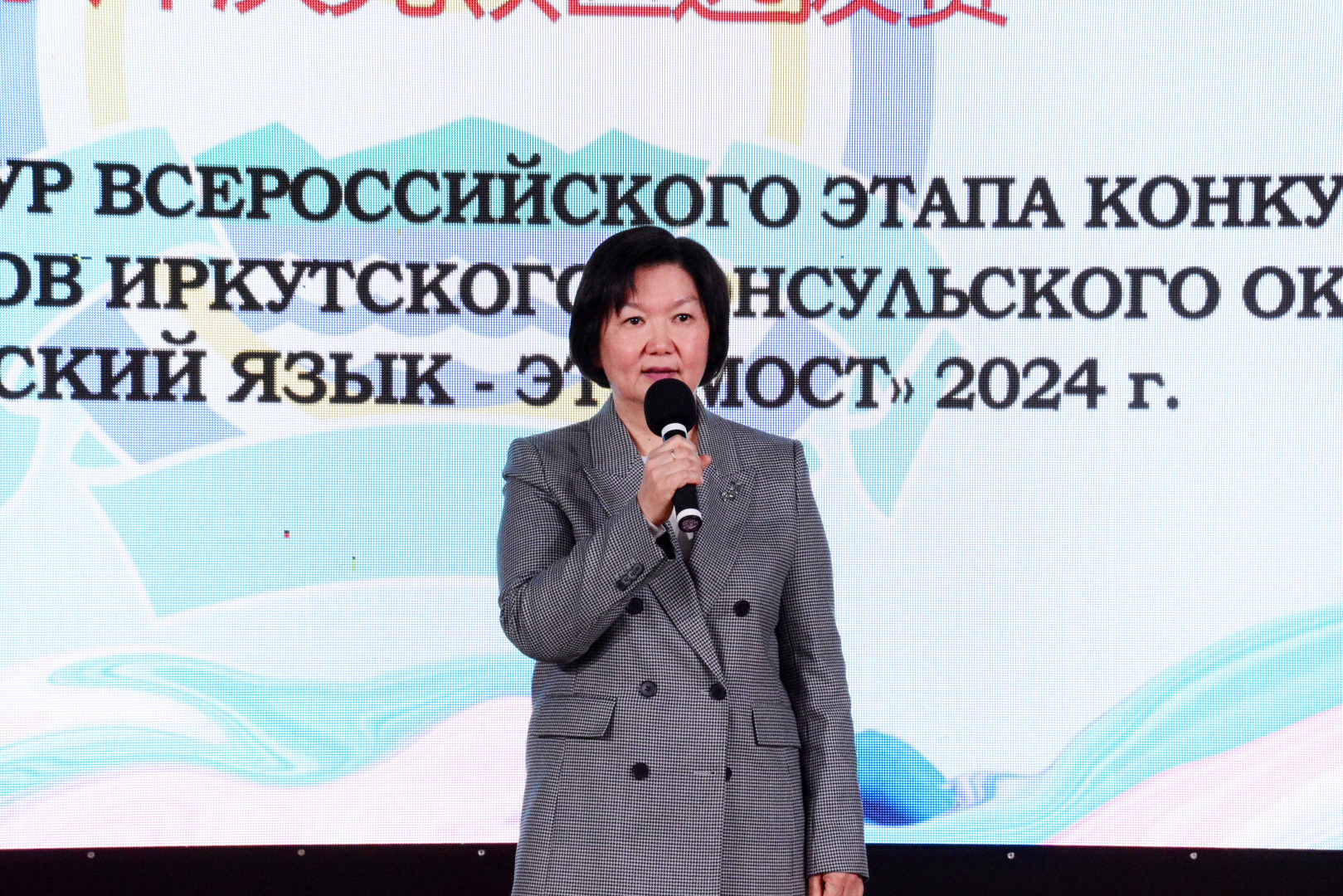 Участников конкурса поприветствовали почетные гости мероприятия – Генеральный консул Генконсульства КНР в г. Иркутске господин Ли Хай, руководитель территориального органа Министерства иностранных дел России в г. Улан-Удэ Александра Ивановна Пономарева, заместитель министра по делам образования и науки, председатель Комитета общего и дополнительного образования Буянтуев Батор Бимба-Дашиевич.