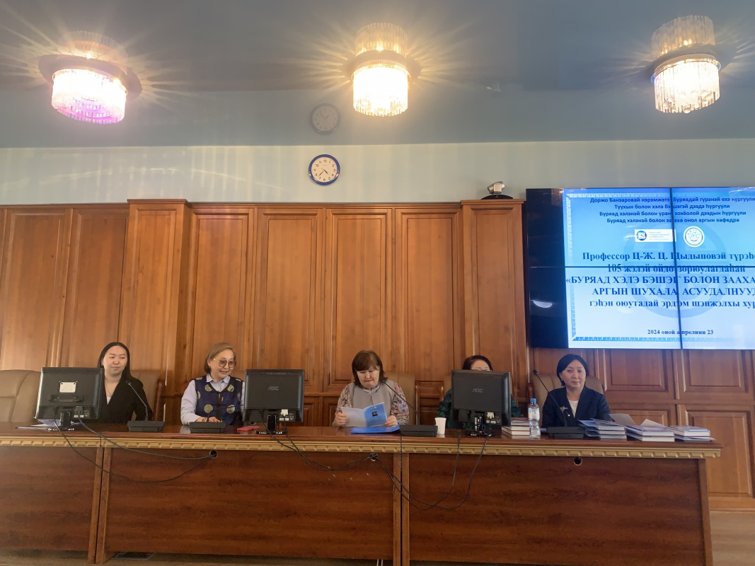 В ходе планерного заседания выступила Будаева Галина Дамбаевна, к.филол.н., ветеран Высшей школы бурятского языка и литературы с воспоминаниями об учителе, коллеге Цыдыпове Цей-Жаб Цыдыповиче. Магистрант 2 курса Ешисамбуев Димчик, студент группы 03522м, представил доклад «Ц. Ц. Цыдыпов – багша, сэрэгшэ, эрдэмтэн».