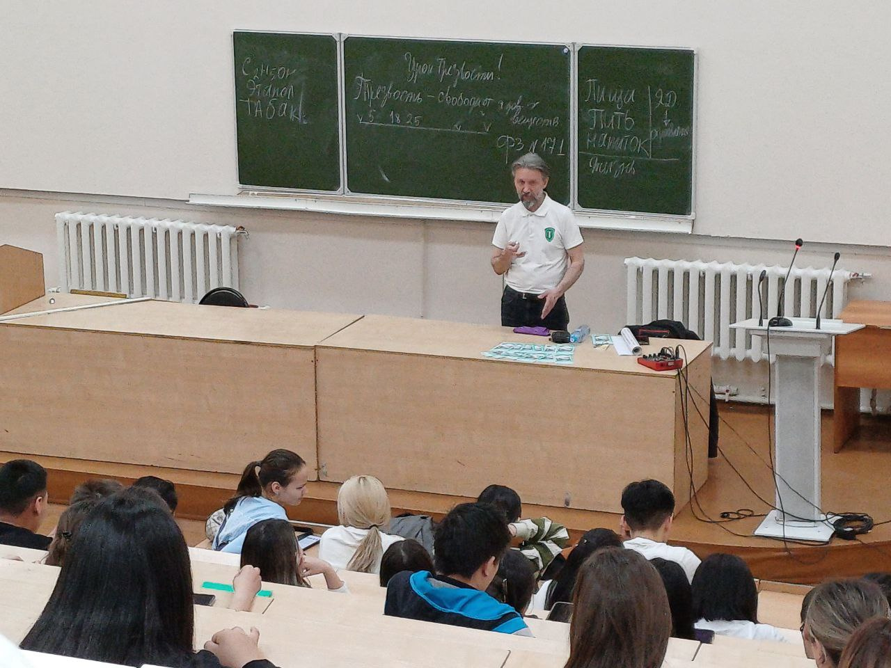 Студентам Бурятского государственного университета им. Доржи Банзарова лекцию на тему «Трезвость как ценность жизни для молодежи» прочитал руководитель межрегионального движения «Трезвая Россия» в Нижнем Тагиле Александр Вшивцев.