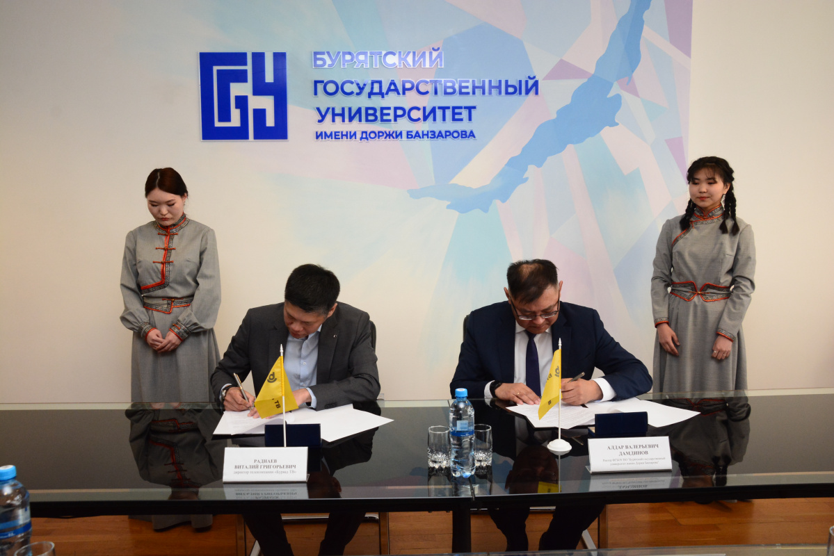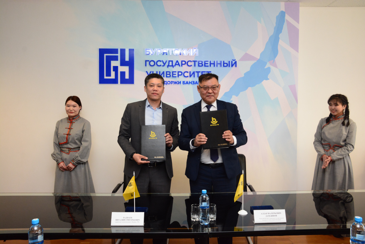 Ректор Бурятского государственного университета Алдар Валерьевич Дамдинов и руководитель первого национального телевизионного канала на бурятском языке «Буряад ТВ» Виталий Григорьевич Раднаев подписали соглашение о сотрудничестве. В соответствии с документом, стороны консолидируют усилия в вопросах поддержки, развития и продвижения бурятского языка. Ключевой темой данного соглашения является подготовка высококвалифицированных специалистов по бурятскому языку.
