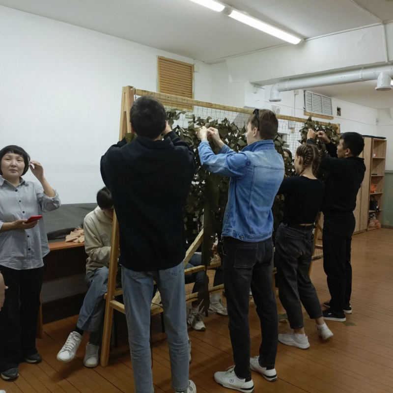 За время сбора, в двух мастерских по плетению сетей (Пушкина, 25 и Главный корпус БГУ, ауд. 0150) силами студентов разных институтов, колледжа и преподавателей было изготовлено 7 маскировочных сетей.