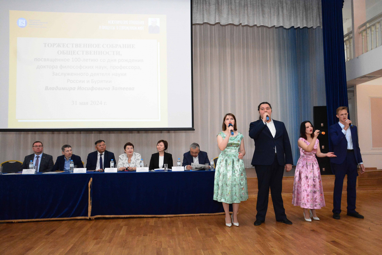 31 мая 2024 года в Бурятском государственном университете имени Доржи Банзарова состоялись мероприятия, посвященные 100-летию со дня рождения доктора философских наук, профессора, заслуженного деятеля науки РФ и РБ Владимира Иосифовича Затеева, - торжественное собрание общественности и Всероссийская научная конференция«Межэтнические отношения и процессы в современном мире».