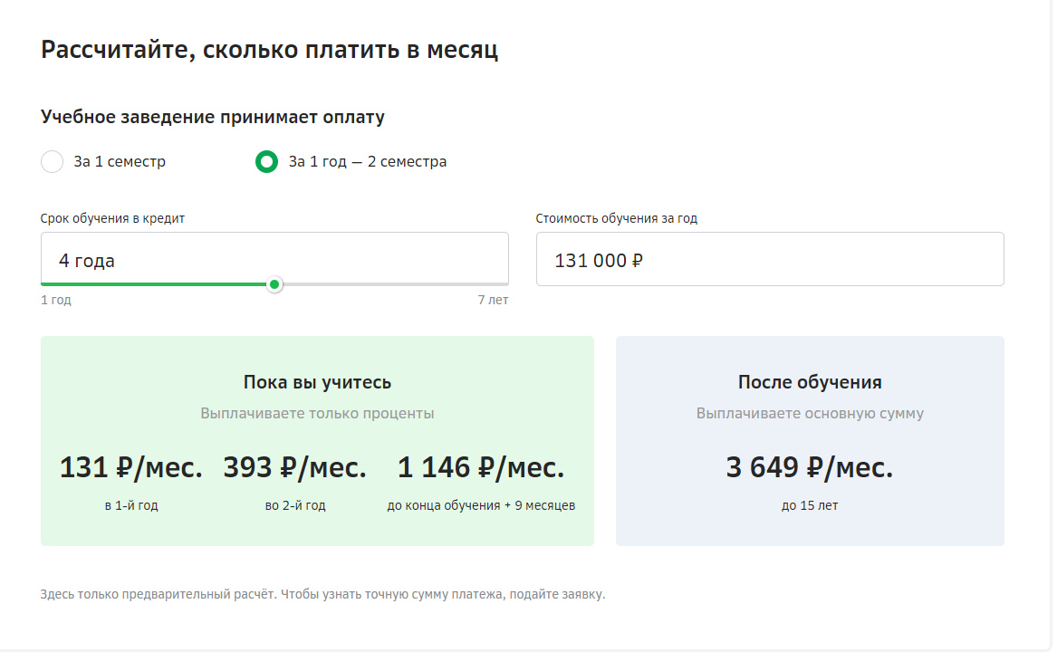 Легко выплачивать: весь срок обучения плюс 9 мес вы платите только проценты, остальное можете возвращать в течение 15 лет
