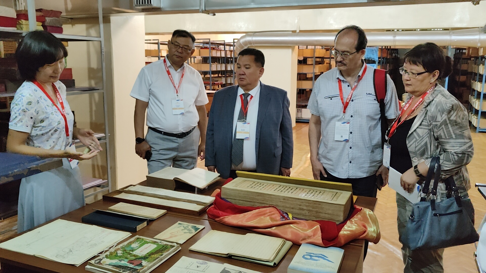 В рамках данной конференции ректоры Бурятского, Калмыцкого, Тувинского государственных университетов А. В. Дамдинов, Б. К. Салаев, О. М. Хомушку, заместитель директора по научной работе Института востоковедения РАН В. Ц. Головачев посетили хранилище Центра Восточных рукописей и ксилографов ИМБТ СО РАН. Гости соприкоснулись с одним из крупнейших в мире собраний письменных памятников на восточных языках, старопечатных книг и рукописей, уникальных архивных документов. Их поразила бесценная коллекция буддийских ксилографов, самые ранние из которых датируются XVI-XVII вв. В настоящее время общее их количество достигает более 100 тысяч сочинений на тибетском языке. Центральным событием посещения хранилища стало знакомство с буддийской святыней – оригинальным комплектом канона Ганджур, куда вошли более тысячи текстов, содержащих наставления и слова самого Будды. Шедевры религиозного буддийского наследия являются предметом научных исследований, в которых каждое новое знание добыто путем титанической работы с текстом, включающим их глубинный разбор, расшифровку и перевод. Гости выразили огромную благодарность сотрудникам хранилища восточных рукописей и ксилографов, ректору БГУ за уникальную «встречу» с книгами, содержащими высшую мудрость и знание.