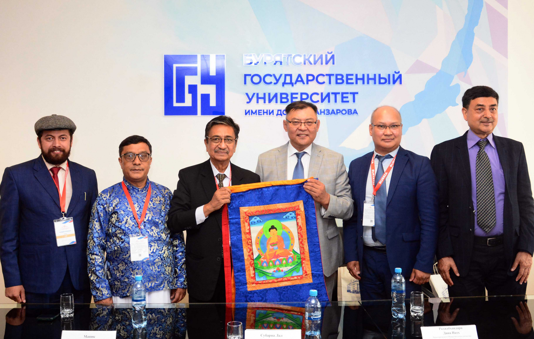 Ректор А. В. Дамдинов тепло приветствовал делегацию из Непала, которую представили координатор буддийского университета Лумбини Хадха Кумар, декан Лумбини Маник Ратна Шакья, профессор Субарна Лал и их коллеги. Руководство буддийского университета Лумбини проявили большой интерес к сотрудничеству с БГУ и готовность обсудить конкретные пути их реализации. Профессор Субарна Лал отметил ту высокую миссию, которую несет в мир университет Лумбини – вывести все буддийские страны на одну диалоговую площадку, выступить объединяющим началом. В настоящее время университет Лумбини тесно сотрудничает с университетами Китая, Японии, Таиланда, Кореи, Монголии. Они выразили надежду, что Бурятский Государственный университет первым из российских вузов присоединиться к образовательному меморандуму.