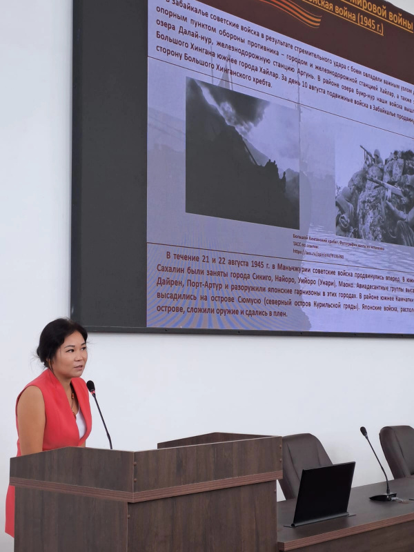 Также 3 сентября ровно 79 лет назад окончилась Вторая мировая война. Это еще одна дата, о которой говорили сотрудники Центра со студентами. Дата 3 сентября учреждена Указом Президиума Верховного Совета СССР в сентябре 1945 года – на следующий день после капитуляции Японии. В этот день завершилось самое страшное, самое кровопролитное событие всей истории — Вторая мировая война. Победная точка в ней была поставлена именно на Дальнем Востоке, на Курильских островах.