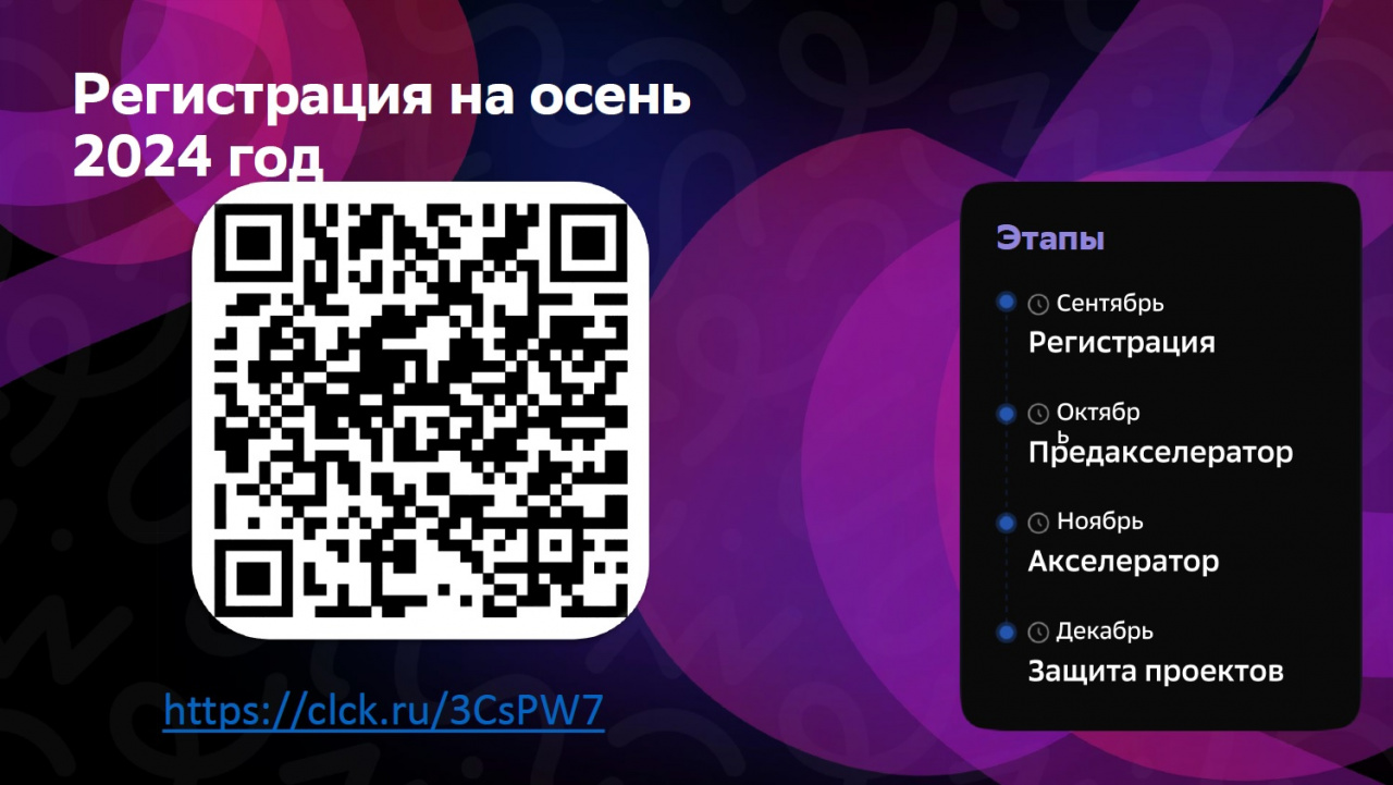 А наши партнеры от Сбера пригласили на федеральный акселератор «Первое дело». Это акселератор для начинающих предпринимателей. Цель - помочь людям, интересующимся предпринимательством, начать свой бизнес. В прошлом году через "Первое дело" прошли более 20 000 человек, более сотни открытых бизнесов на проекте. Обучение пройдёт онлайн. Курс бесплатный. Старт занятий – в середине октября 2024 года. За 10 недель вы сформируете бизнес-модель, научитесь правильно упаковывать продукт, настраивать рекламу. Вам будут помогать действующие предприниматели, эксперты и трекеры-наставники.