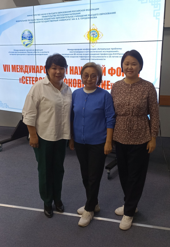 C 23 по 26 октября с.г. в г. Элиста на базе Калмыцкого государственного университета им. Б.Б. Городовикова прошла IV Международная научная конференция «Актуальные проблемы монголоведных и алтаистических исследований, посвященная 85-летию профессора В.И. Рассадина, 35-летию создания тофаларской письменности, 30-летию создания сойотской письменности». Конференция была проведена в рамках программы VII Международного научного форума «Сетевое востоковедение».