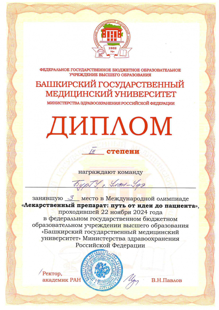 22 ноября 2024 г. в г.Уфа, на базе Башкирского государственного медицинского университета прошла Международная олимпиада по фармации"Лекарственный препарат.