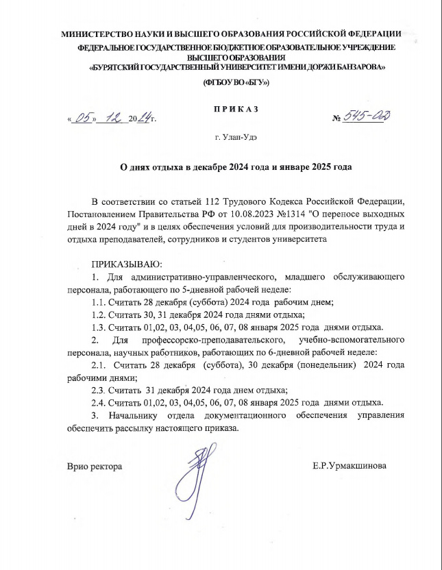 В соответствии со статьей 112 Трудового Кодекса Российской Федерации, Постановлением Правительства РФ от 10.08.2023 №1314 "О переносе выходных дней в 2024 году" и в целях обеспечения условий для производительности труда и отдыха преподавателей, сотрудников и студентов университета