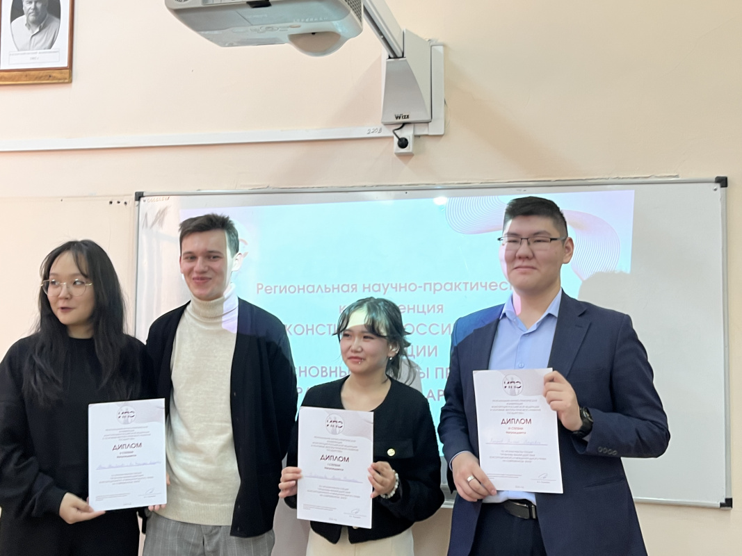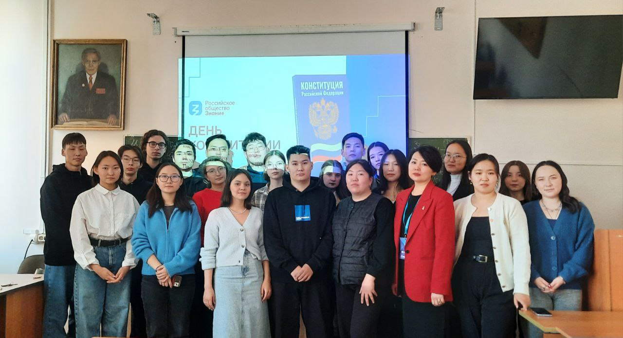 В этот день в Институте права и Экономики состоялась научно-практическая конференция на тему «Конституция Российской Федерации и основные векторы правового развития», с лекциями выступили преподаватели института - Бадмацыренова Елизавета Леонидовна, Бальжиев Борис Александрович, а студенты и все желающие приняли участие во Всероссийском правовом (юридическом) диктанте.