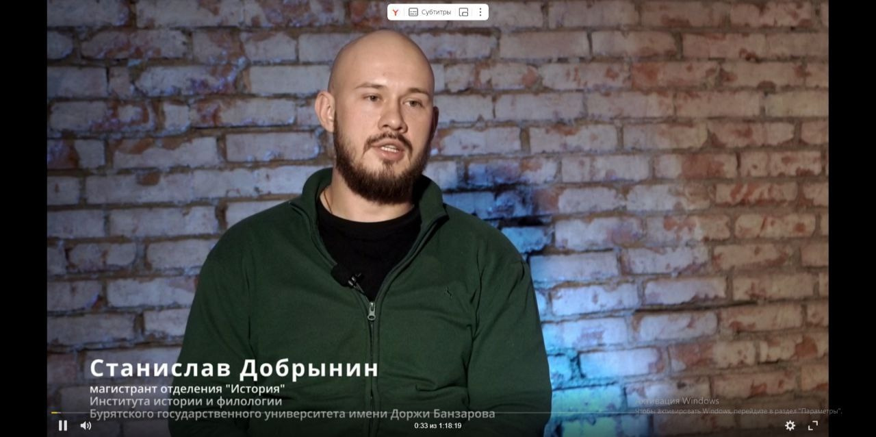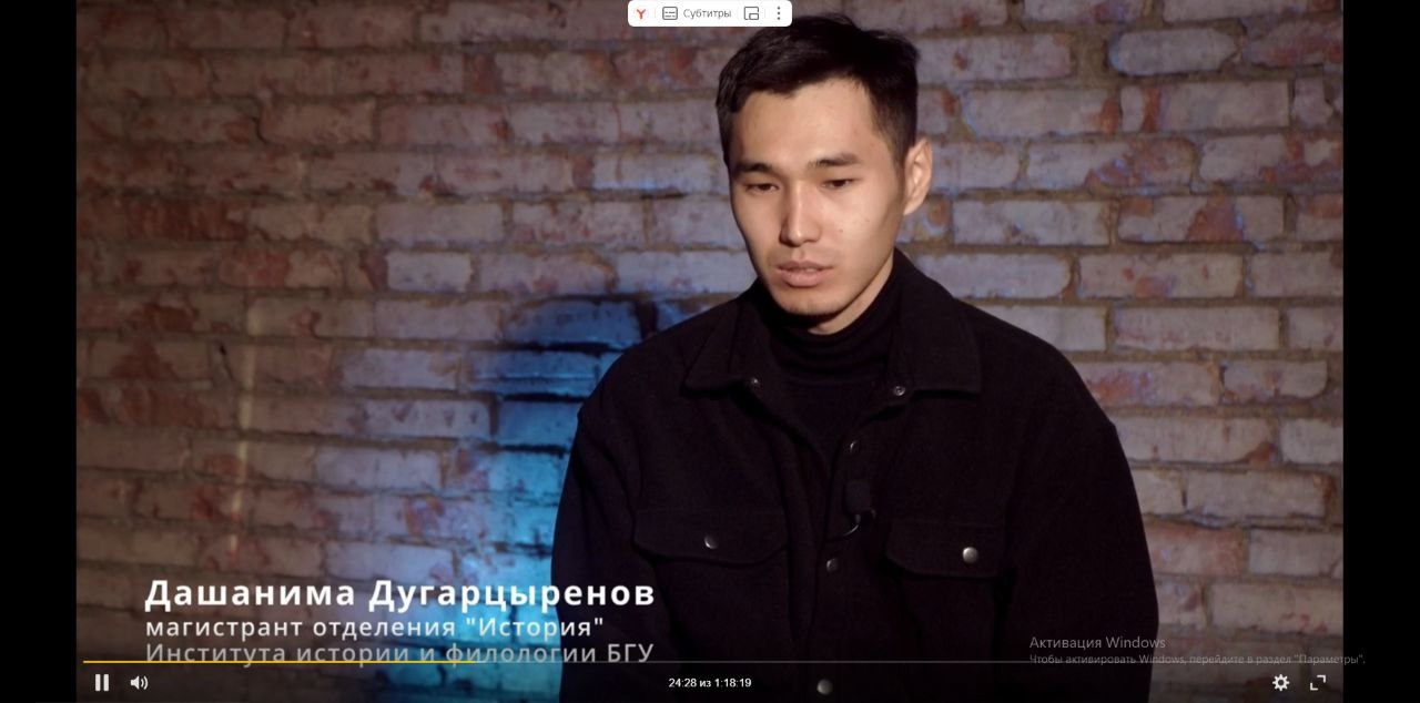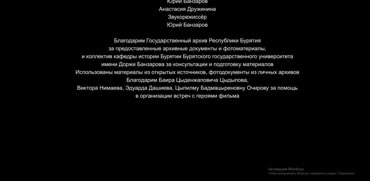 Для коллектива преподавателей и магистрантов-историков кафедры (Ольга Убеева, Алтына Шойдонова, Ольга Малыгина, Артем Золотарëв, Станислав Добрынин, Дашанима Дугарцыренов) стало честью принять участие в подготовке материалов и съёмках документального фильма. Мы благодарим за предоставленную возможность художественного руководителя Государственного Бурятского Академического Театра Драмы им. Х. Намсараева, режиссёра Олега Юмова, Народную артистку Республики Бурятия Надежду Мунконову, видеооператора Санжи Очирова и весь коллектив, занятый в проекте.Документальный фильм посвящён нашим современникам, принимающим участие в зоне проведения специальной военной операции.