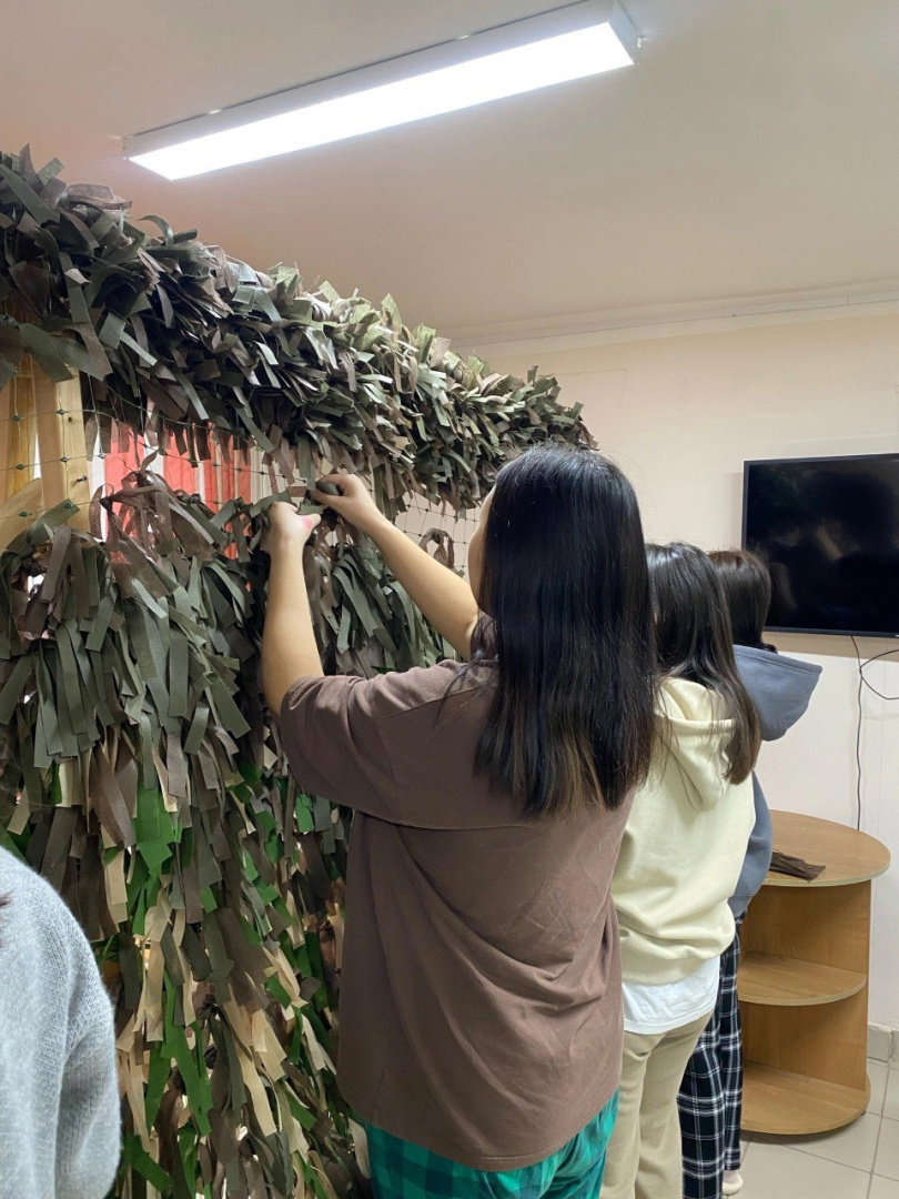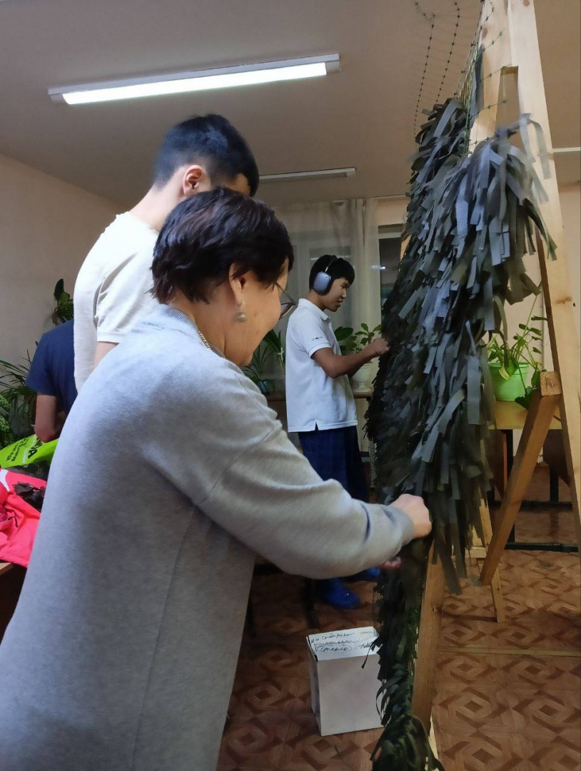 Во время новогодних праздников и каникул ребята, не жалея времени и сил, под руководством своих наставников изготавливали маскировочные сети.