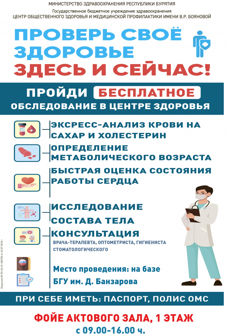 Мы рады пригласить вас на бесплатное комплексное обследование организма, которое предоставит уникальную возможность оценить ваше здоровье и физическое состояние. Не упустите шанс улучшить качество своей жизни!