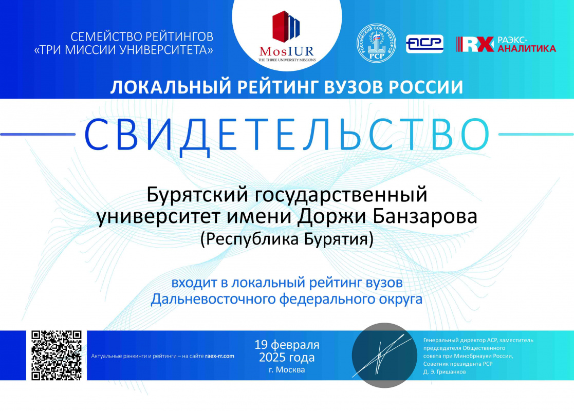 Бурятский государственный университет является лидером локального рейтинга RAEX прошлого года, так что в наступившем 2025 году вновь подтвердил свое высокое место.