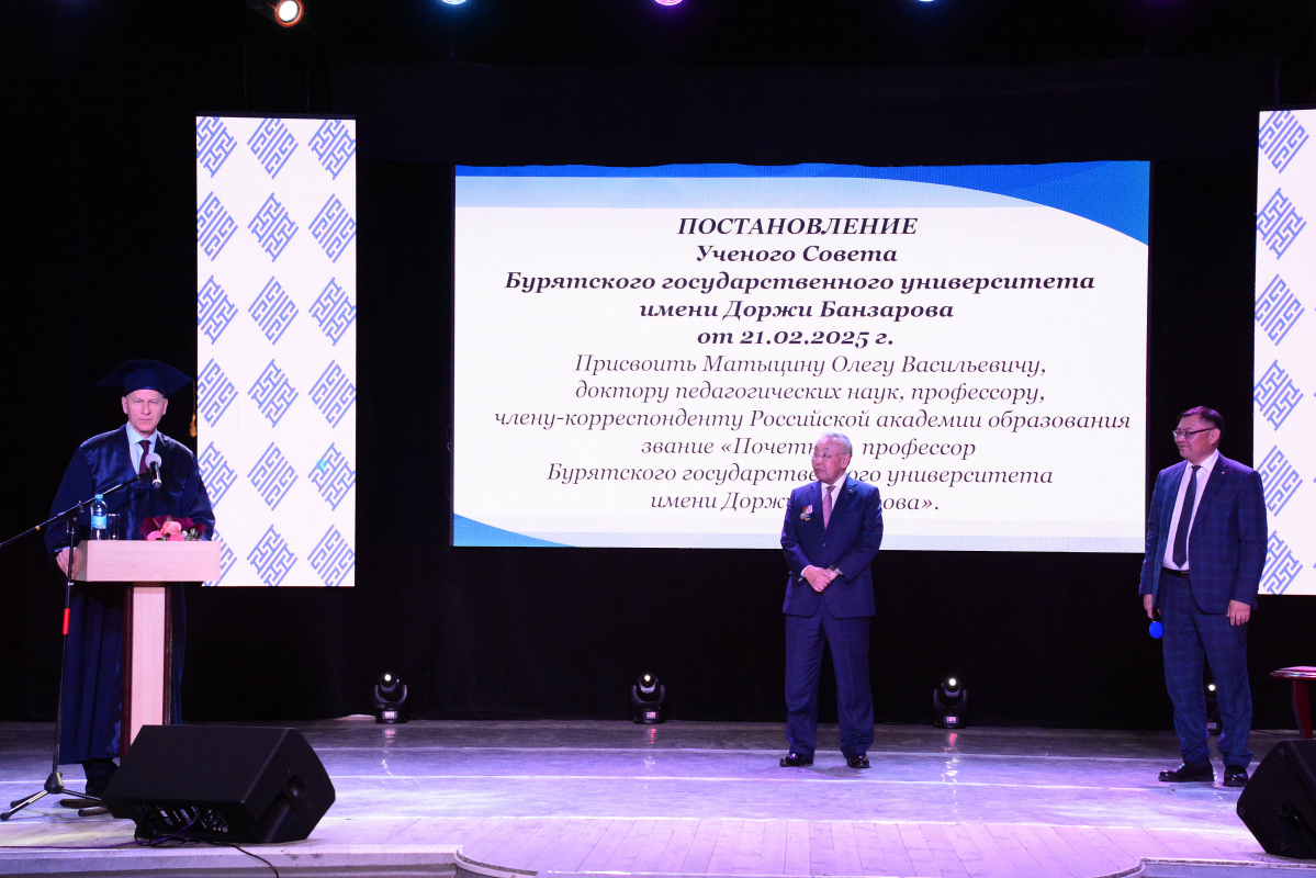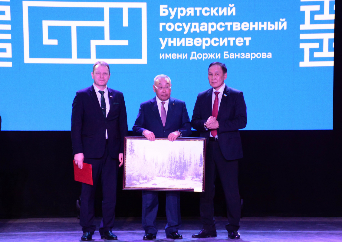 21 февраля в университете прошло торжественное заседание Ученого Совета БГУ по случаю 75-летия со дня рождения основателя Бурятского государственного университета и его первого ректора, профессора, доктора педагогических наук, члена-корреспондента Российской академии образования С. В. Калмыкова.