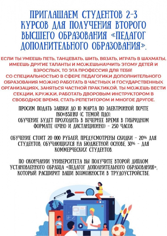 Приглашаем студентов 2-3 курсов получить второе высшее образование и расширить свои возможности трудоустройства по следующим направлениям: