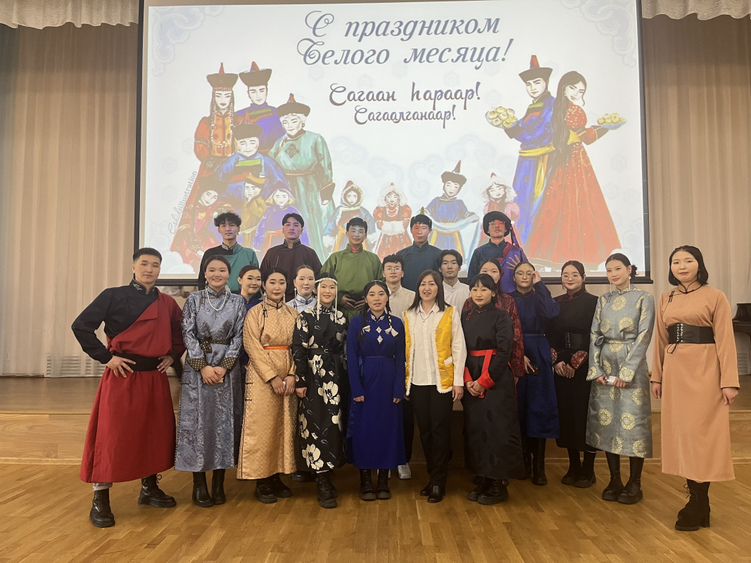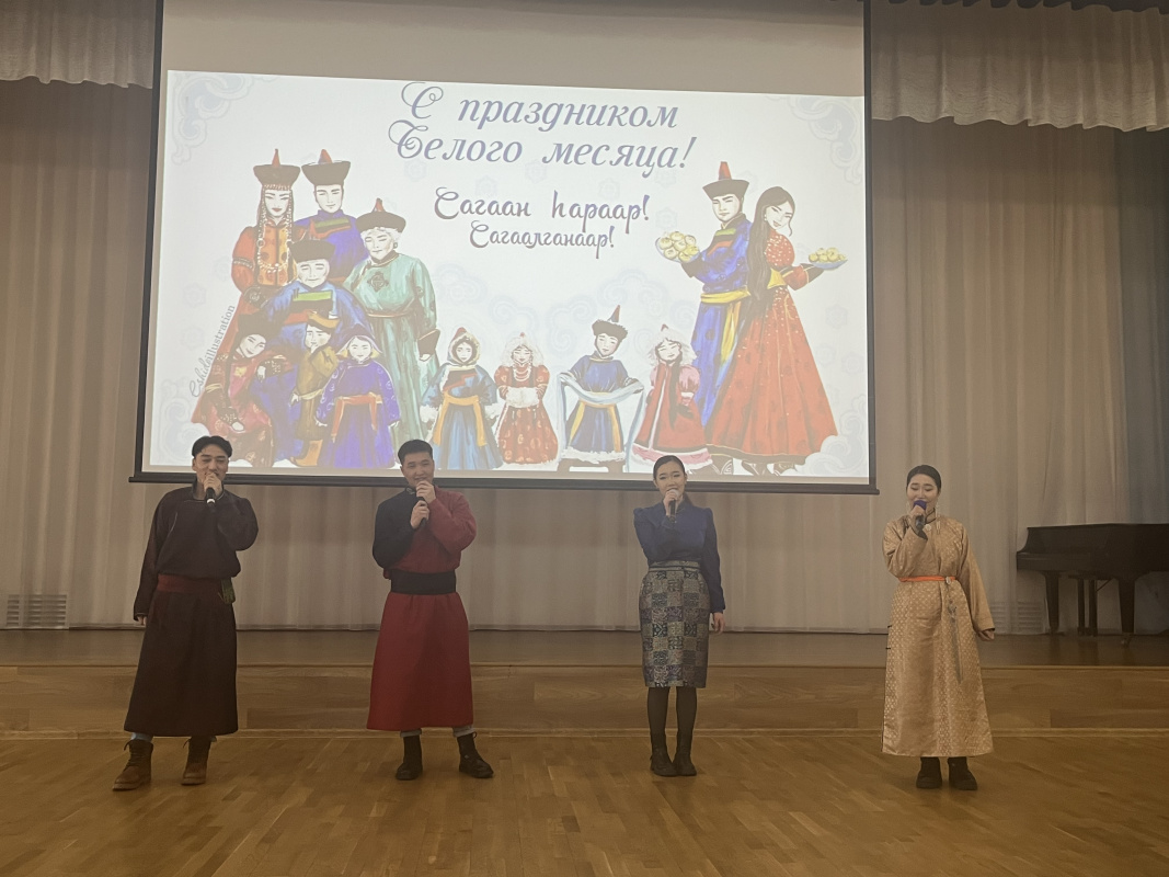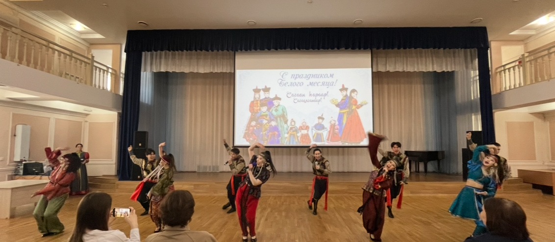 5 марта кафедра РКИ провела ежегодное интерактивное мероприятие «Встречаем Белый месяц» для иностранных студентов Института истории и филологии. Встреча прошла в Бальном зале БГУ при поддержке отдела международных связей, творческого коллектива этно-студии «Аядон», студентов 4 курса Восточного института Банзаракцаевой В. и Ринчинимаевой Аюны.