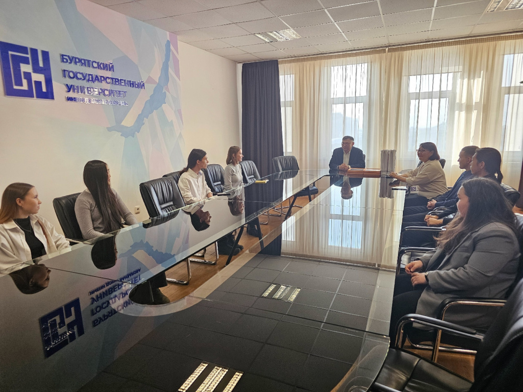 7 марта Ректор БГУ Алдар Валерьевич Дамдинов с директором Колледжа БГУ Туяной Владимировной Марзаевой встретился с победителем и призерами регионального этапа чемпионата профессионального мастерства, их наставниками, сердечно поблагодарил их за достижения, вручил благодарственные письма.
