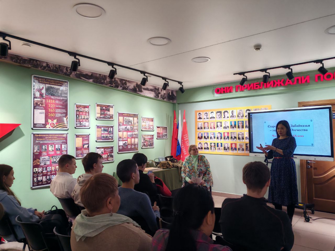 17 марта 2025 г. в рамках Года Защитников Отечества и в предверрии празднования Победы в Великой Отечественной войне 1941-1945 гг. сотрудники Координационного центра организовали встречу директора Музея БНЦ СО РАН, преподавателя музееведения кафедры истории Бурятия ИИФ, д.и.н. Бураевой Светланы Валерьевны со студентами 1 курса направления "Теология" ИИФ БГУ в Зале боевой славы.
