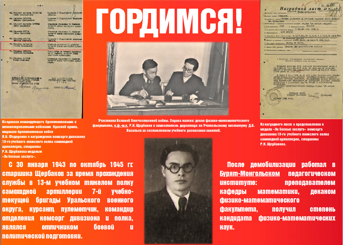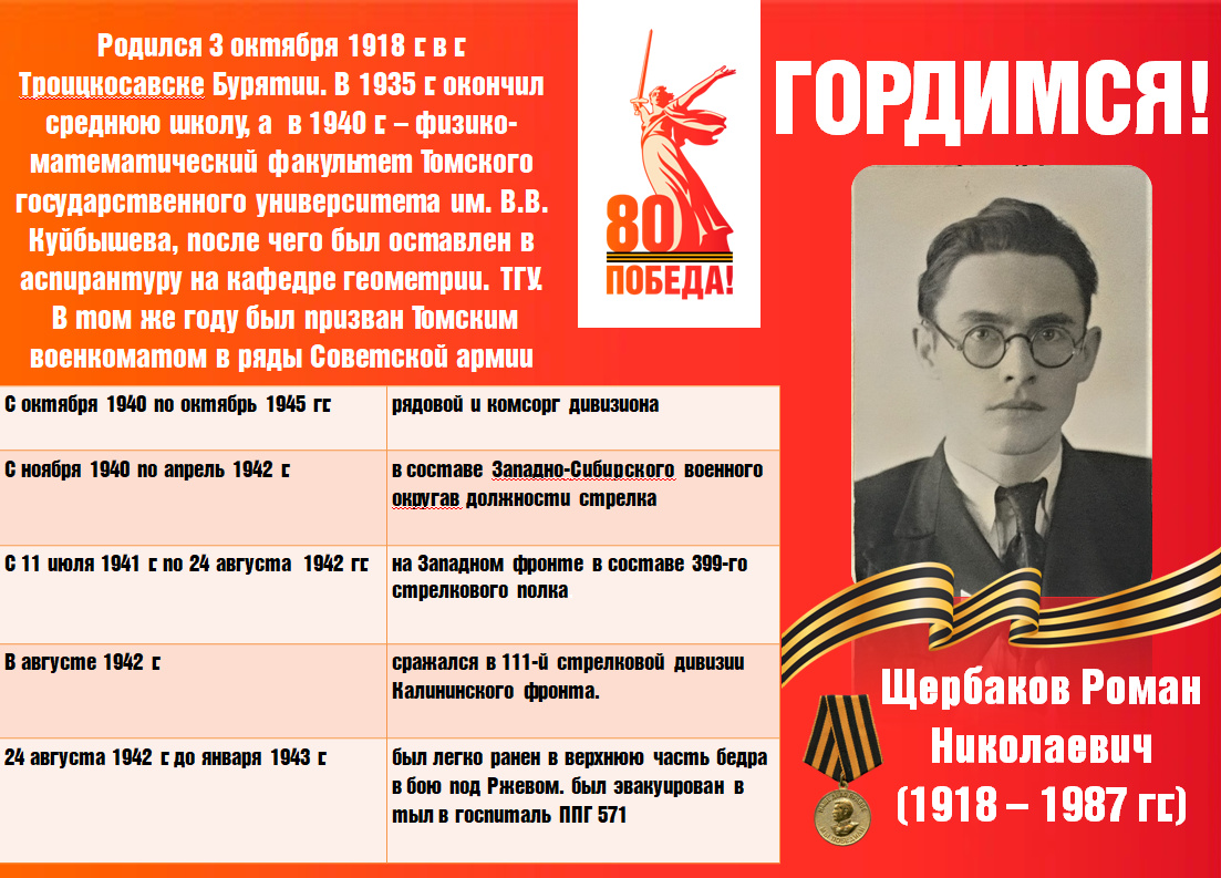Щербаков Роман Николаевич родился 3 октября 1918 г. в г. Троицкосавске Бурятии.