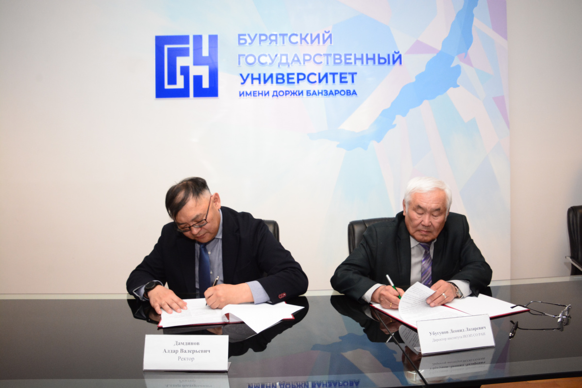 Соглашение подписали: ректор БГУ А.В. Дамдинов и директор ИОЭБ СО РАН Л.Л. Убугунов.