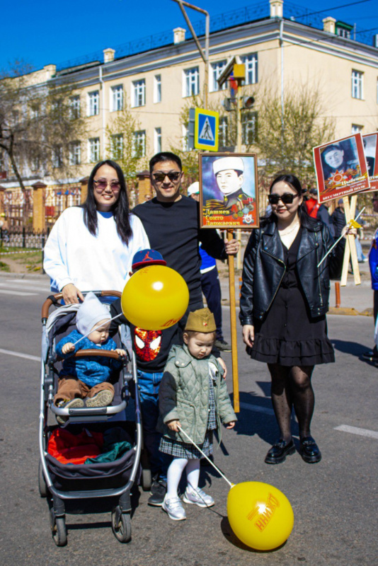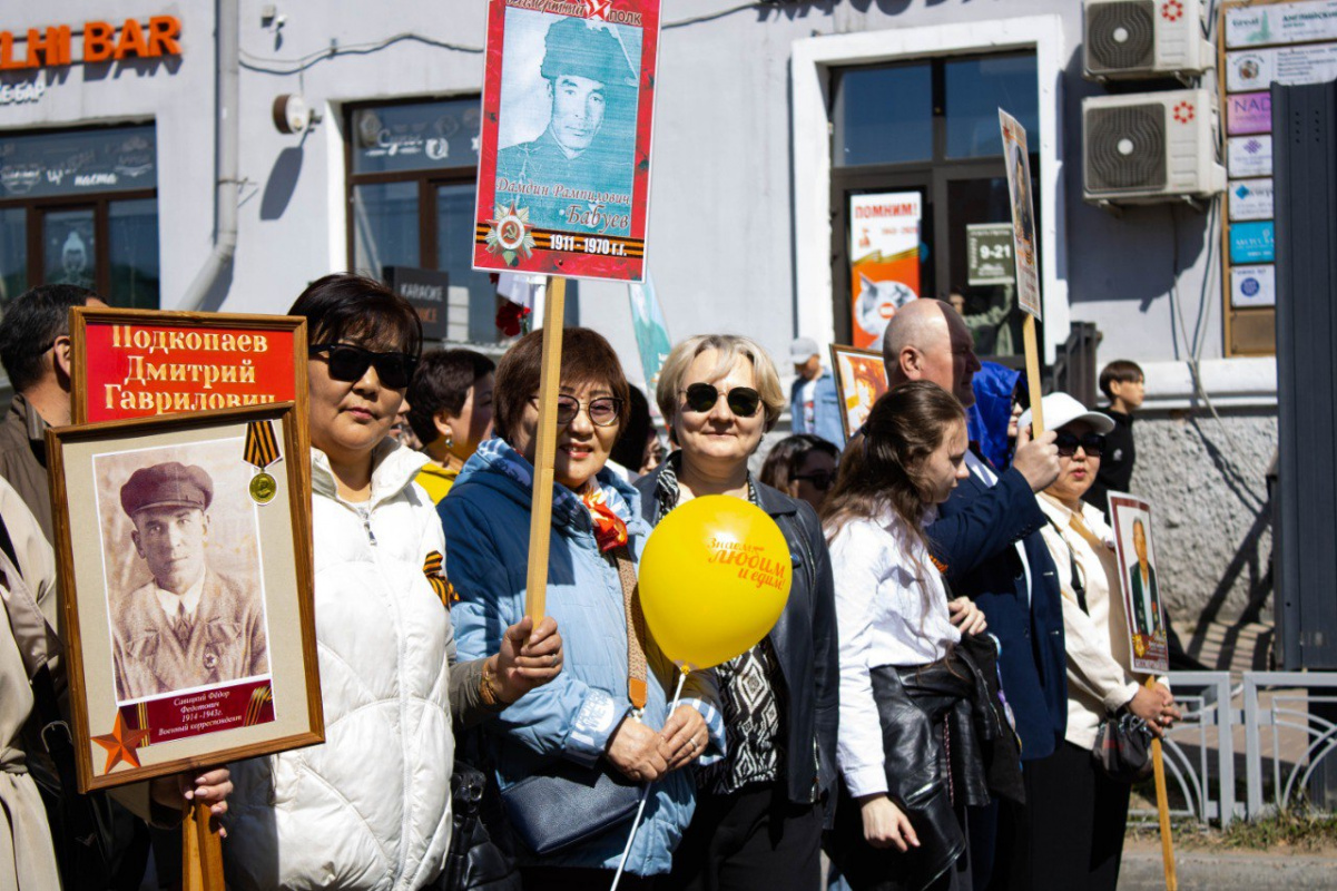 В столице Республики Бурятия тысячи потомков героев Великой Отечественной войны, тружеников тыла и участников специальной военной операции прошли с портретами своих героев от площади Советов до площади Революции.