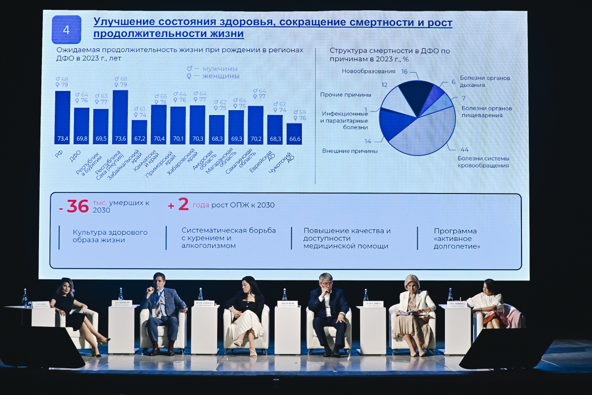 В конференции приняли участие первый заместитель министра труда и социальной защиты РФ Ольга Баталина, заместитель министра РФ по развитию Дальнего Востока и Арктики Эльвира Нургалиева, Глава Республики Бурятии Алексей Цыденов, представители органов власти всех регионов Дальневосточного федерального округа, эксперты, ученые, общественные деятели. Основными темами конференции являются вопросы сохранения здоровья граждан, повышение продолжительности жизни, реализация демографической политики в регионах Дальневосточного федерального округа и другие актуальные направления, направленные на улучшение демографической ситуации и социально-экономическое развитие региона.