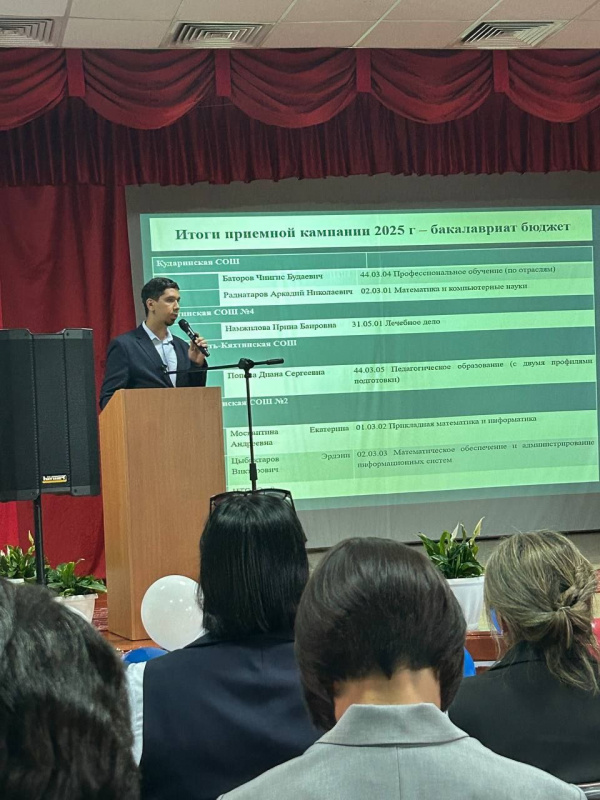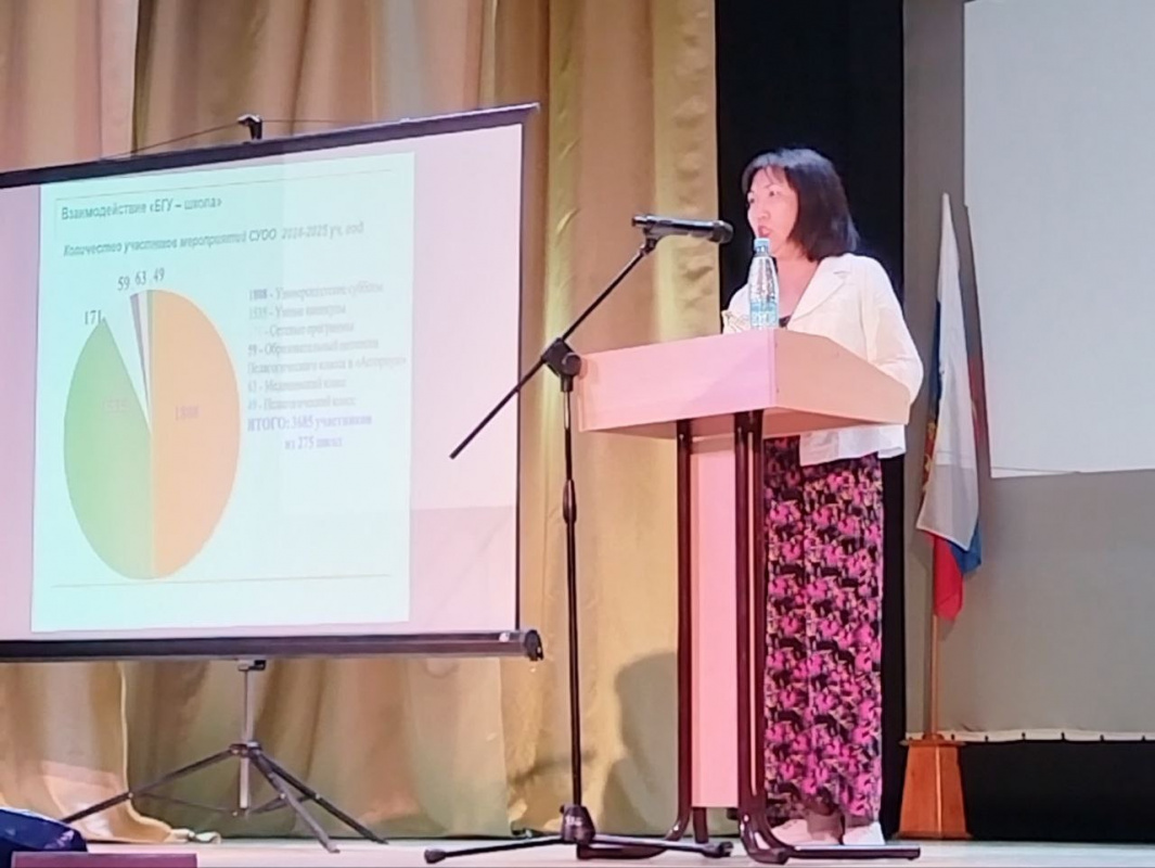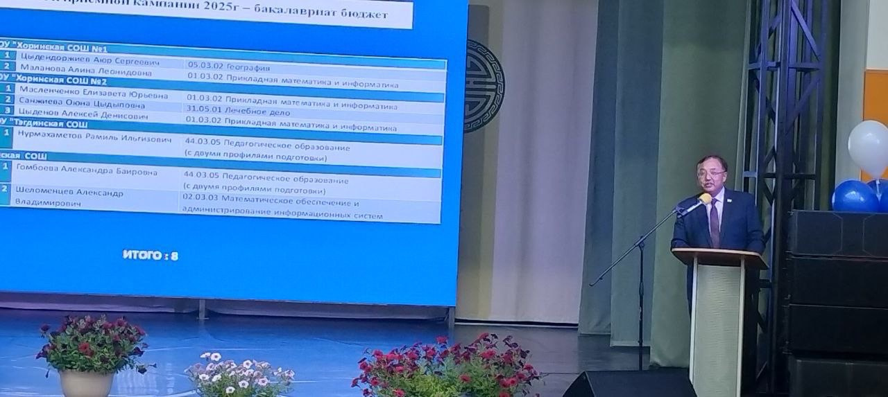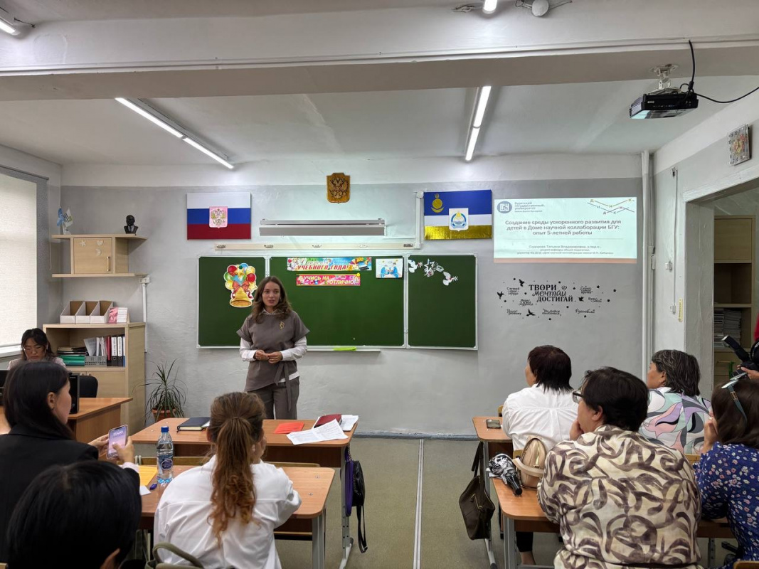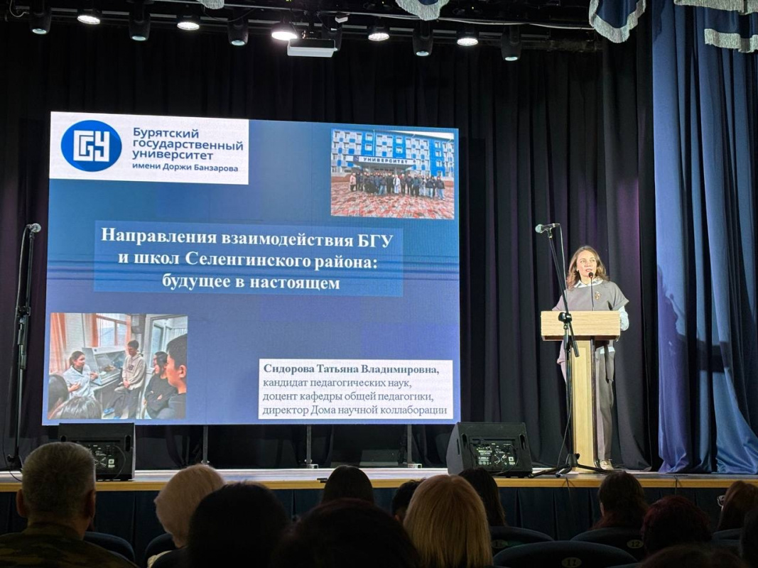 Августовские конференции учителей продолжаются. 28 августа состоялась конференция учителей Кабанского района, на пленрном заседании кторой выступила Раднаева Эльвира Львовна, директор Института права и экономики, к. . н. Сегодня, 29 августа представтели БГУ приняли участие в традиционных августовских совещаниях учителей в 8 районах республики. Все наши коллеги выступили с докладами на пленарных заседаниях, а также перед директорами школ на секционных мероприятиях. В Закаменском районе выступила Урмакшинова Елена Рониславовна, проректор по УР, к.т.н., Кяхтинском районе - Родионов Владимир Александрович, директор Восточного института, д. и. н., в Джидинском районе - Дугарова Альбина Аюшеевна, зав. каф. ГМУ Института права и экономики, к.э.н. в Бичурском - Саганов Олег Николаевич, директор Института физической культуры, спорта и туризма, к.п.н., в Курумканском - Бадмацыренов Тимур Баторович, зав. каф политологии и социологии, д.пол.н., в Прибайкальском - Павлова Эржэна Тугдэновна, зав. каф. Органической химии, к.х.н., в Селенгинском- Сидорова Татьяна Владимировна, директор Дома научной колаборации, к.п.н., в Хоринском - Бадонов Алексей Маланович, зав. каф. Теории социальной работы, к.соц.н. Педагоги районов тепло встретили выступления наших коллег. В каждом районе представители БГУ встретились с выпускниками университета разных лет и выразили благодарность за то, что они творчески применяют на практике полученные в вузе знания и поступательно развиваются в педагогической профессии.