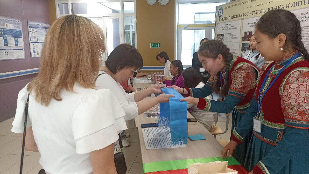 11-12 сентября в СОШ №40 г. Улан-Удэ студенты и преподаватели Высшей школы бурятского языка и литературы Института истории и филологии и этно-студия «Аядон» приняли участие в выставке Всероссийского конкурса «Лучший учитель родного языка и родной литературы». Почетными гостями выставки Высшей школы бурятского языка и литературы стали заместитель министра просвещения РФ Ольга Колударова, руководитель Федерального института родных языков Эсет Бокова, министр образования и науки РБ Валерий Поздняков, почетные члены жюри и участники конкурса.