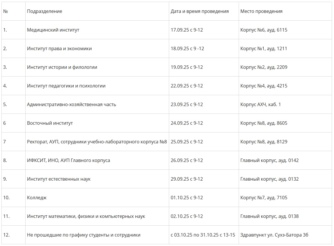 Не прошедшие по графику студенты и сотрудники |