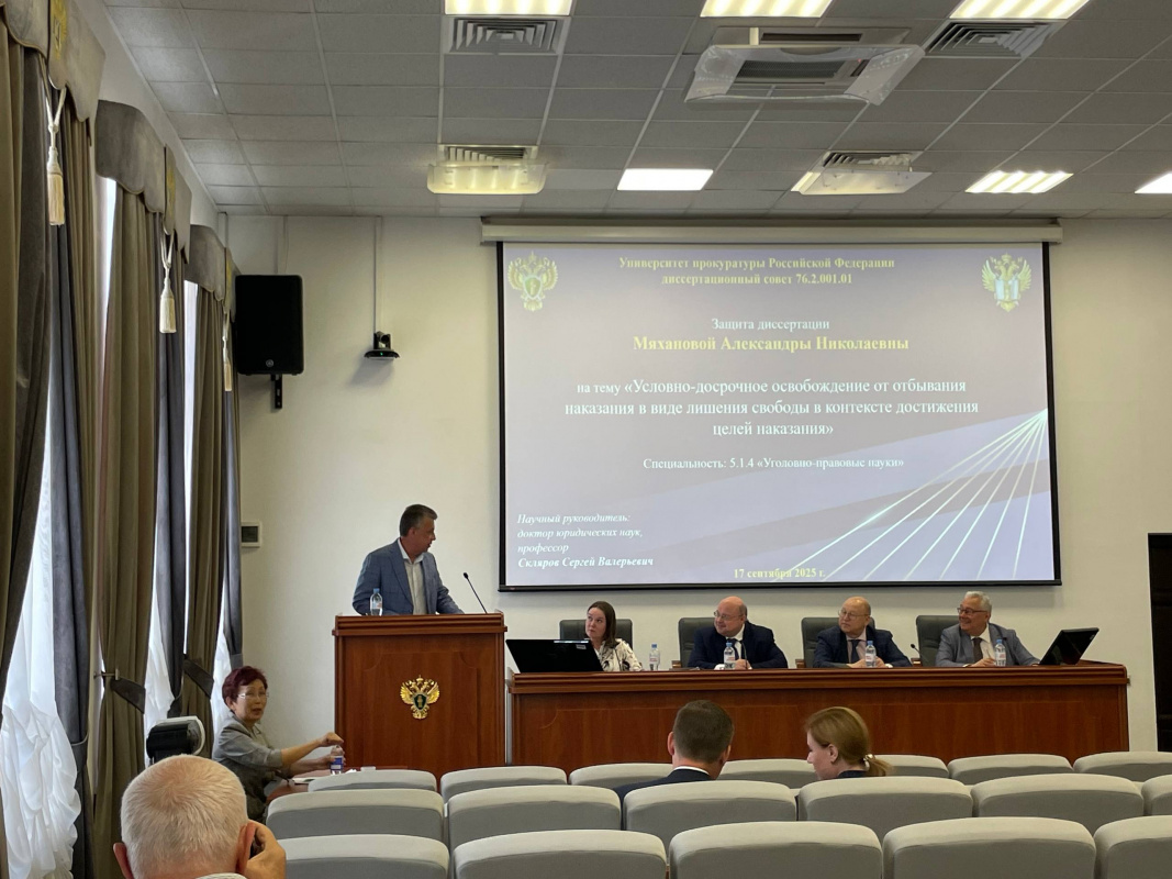 Защита диссертации состоялась 17 сентября 2025 года в Диссертационном совете Университета прокуратуры Российской Федерации (г. Москва) по научной специальности 5.1.4 «Уголовно-правовые науки» на тему «Условно-досрочное освобождение от отбывания наказания в виде лишения свободы в контексте достижения целей наказания». Работа была выполнена под руководством доктора юридических наук, профессора, профессора кафедры уголовного права Российского государственного университета правосудия г. Москва — Склярова Сергея Валерьевича. Желаем уважаемой Александре Николаевне крепкого здоровья, дальнейших успехов в профессиональной и научной деятельности!