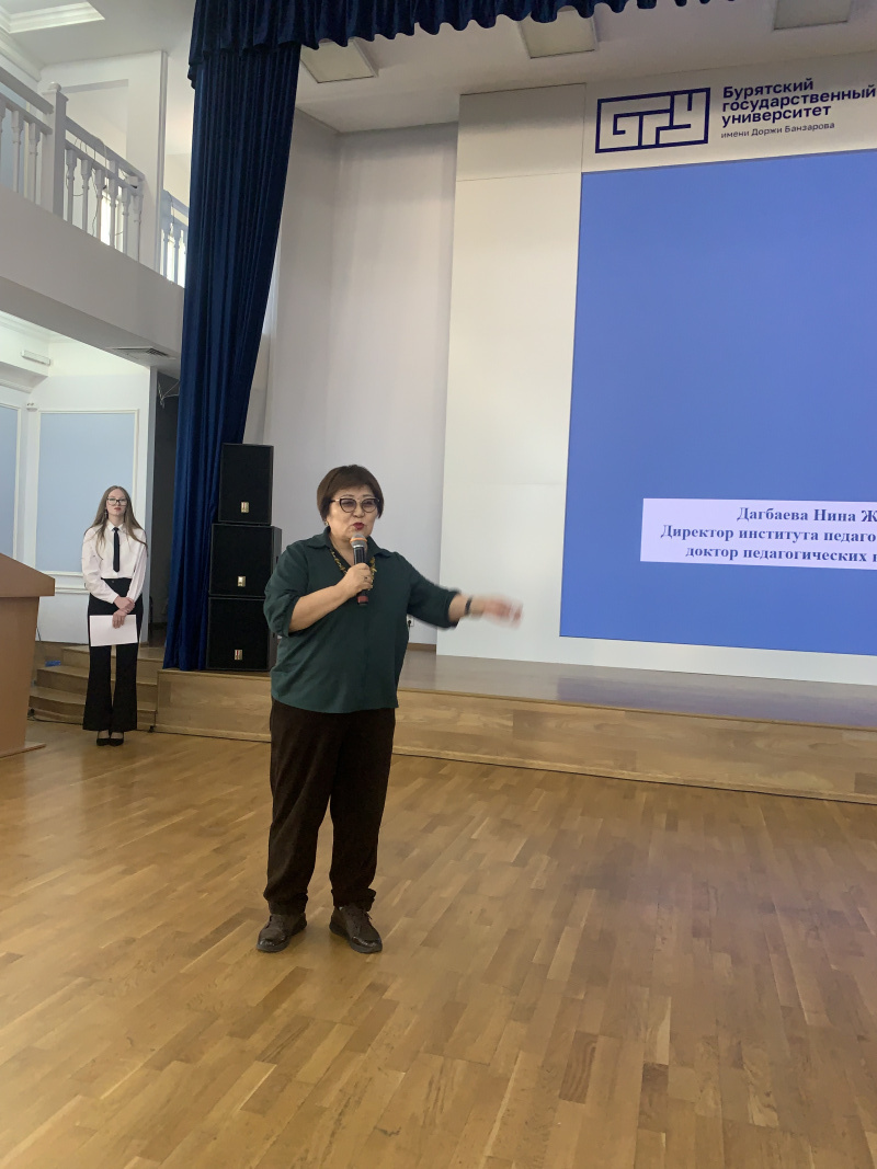 Открыла торжественную церемонию проректор по учебной работе БГУ Е.Р. Урмакшинова. С приветственными словами к ребятам обратились председатель комитета по образованию города А.В. Батурина, директор Института педагогики и психологии Н.Ж. Дагбаева, директор центра мониторинга и развития образования города Н.В. Вставская.
