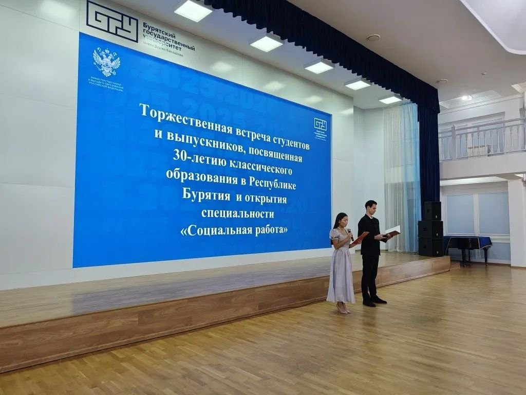 26 сентября 2025 года прошла торжественная встреча студентов и выпускников, посвящённая 30-летию классического образования в Республике Бурятия и открытия специальности «Социальная работа».