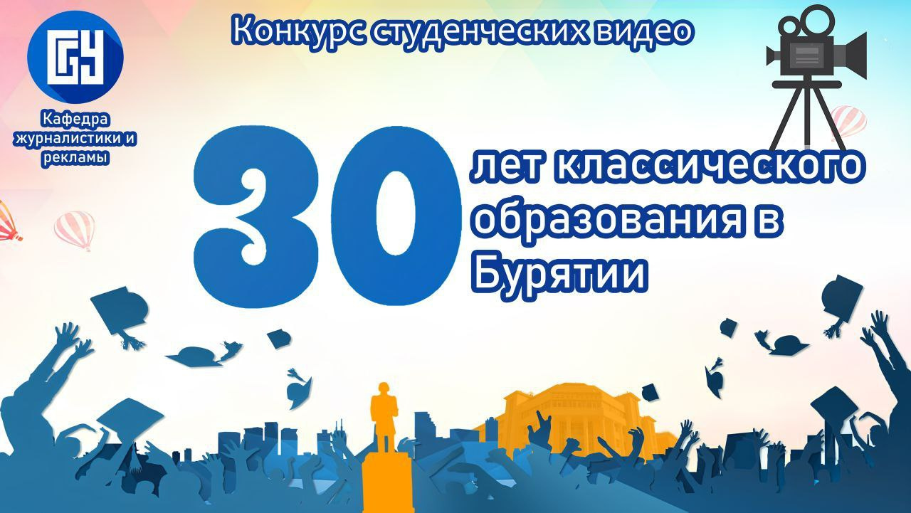 Стартовал конкурс студенческих видеороликов «Мой университет вчера, сегодня, завтра», приуроченный к 30-летию классического университетского образования в Бурятии. Конкурс проводится в целях сохранения, приумножения и развития традиций Бурятского государственного университета имени Доржи Банзарова, укрепления и продвижения имиджа вуза, формирования условий для развития студенческого творчества.