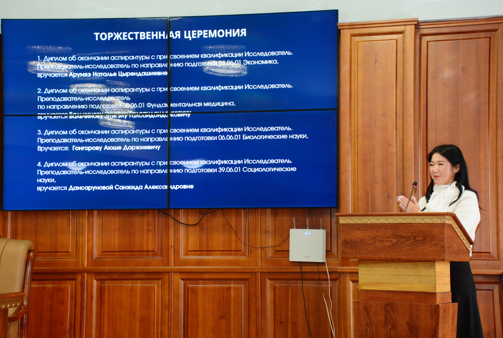 В Бурятском государственном университете имени Доржи Банзарова состоялась торжественная церемония вручения дипломов и свидетельств об окончании аспирантуры.